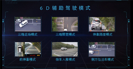 道可視6D輔助駕駛模式(三維近場模式、三維限寬模式、停靠路崖模式、前停靠模式、倒車入庫模式、側(cè)方位泊車模式),根據(jù)各種不同的行車環(huán)境,帶來相應(yīng)的畫面呈現(xiàn)形式,便于駕駛者更直觀的查看到車外的行駛環(huán)境,從容面對各種狹窄、人多、障礙物等復(fù)雜路況。